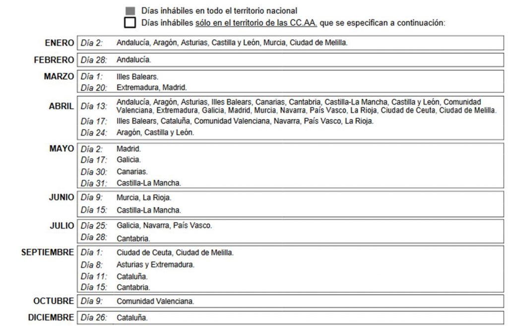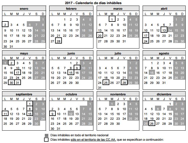 Se adjunta el calendario de días inhábiles del 2017, a efectos de cómputos de plazos con la Agencia Tributaria, para el último trimestre del año 2017.